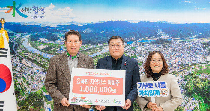 김윤철 합천군수는 “연초부터 지역사회의 어려운 이웃을 위한 나눔 실천에 감사드리며, 소중한 성금은 꼭 필요한 이웃에게 전달될 수 있도록 하겠다.”고 감사의 마음을 전했다.