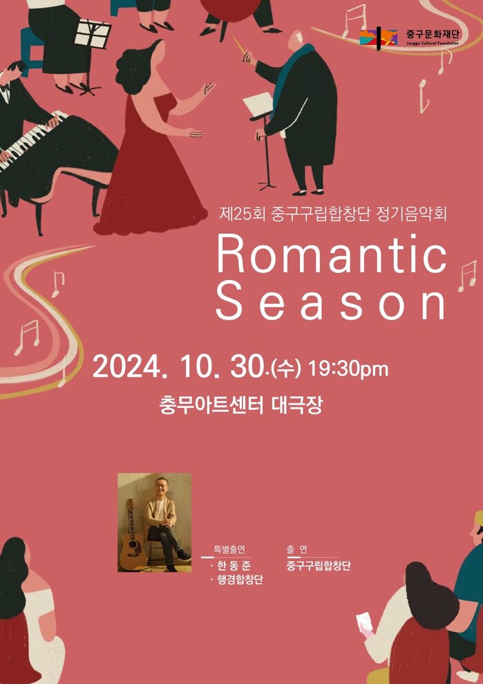 [시민일보 = 여영준 기자] 서울 중구문화재단(이사장 김길성, 사장 조세현)에서 운영하는 중구구립합창단의 25번째 정기연주회 ‘로맨틱 시즌’이 오는 30일 충무아트센터 대극장에서 개최된다.