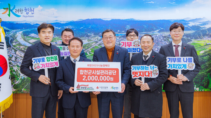 이번 기탁식에는 합천군시설관리공단 조수일 이사장을 비롯해 조대성 부장, 신상근 부장, 김성필 부장과 김용원 팀장, 하경호 과장이 참석했다.