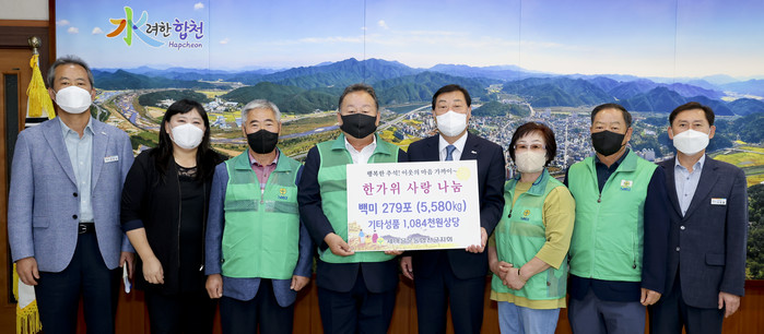 한편, 새마을운동합천군지회는 매년 추석을 맞아 사랑의 쌀과 성품 나누기를 추진해왔으며, 명절맞이 대청소 등 지역사회을 위한 다양한 봉사활동을 실시해 오고 있다.