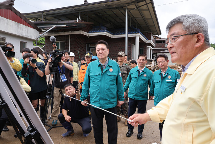 윤 대통령은 이번 호우로 다수 인명 피해가 발생한 것에 대해 “산사태 취약지역 등 위험 지역이 제대로 관리되지 않아 사태를 키운 것으로 판단된다”며 “그 지역이 위험해질 수 있는 상황이 되면 선제적으로 판단해 빨리 안전한 지역으로 이동·대피시켜야 하고, 또 위험 지역으로의 진입은 교통 통제, 출입 통제를 시켜서 위험 지역으로는 들어가지 않도록 하는 것이 인명 피해를 막는 기본 원칙”이라고 강조했다.