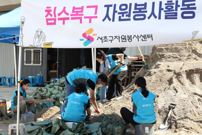 서울 곳곳에서 폭우로 인한 하천 범람, 도로 및 가옥 침수, 정전 등 각종 사고가 잇따른 가운데, SPC그룹 임직원들은 지난 12일 서초구자원봉사센터와 함께 서울 서초구 반포종합운동장에서 반포천 범람 방지 및 복구용 모래주머니를 제작했다. 제작된 모래주머니는 하천 범람으로 인한 침수 등 각종 수해 피해를 방지하고, 원활한 복구 작업을 돕는 데 활용될 예정이다.