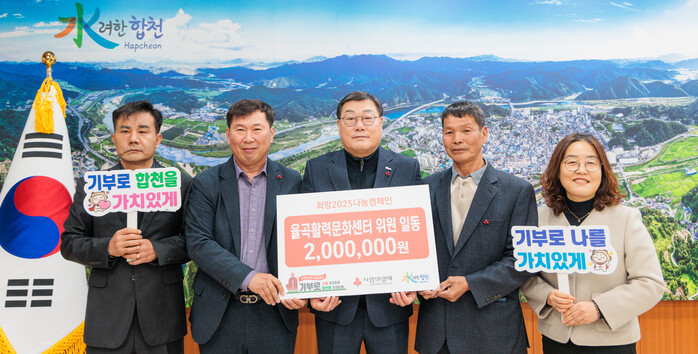 김윤철 합천군수는 “어려운 이웃들과 더불어 살아가는 나눔 실천에 동참해 주신 율곡활력문화센터 위원님들께 감사드리며, 소중한 성금은 꼭 필요한 이웃에게 전달될 수 있도록 하겠다.”고 감사의 마음을 전했다.