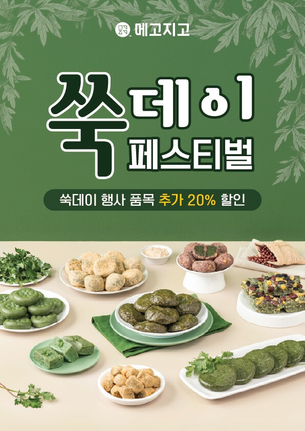 이에 힘입어 메고지고는 오는 5월까지 쑥떡 제품 11종을 최대 50% 할인된 가격에 만날 수 있는 '쑥데이 페스티벌'을 진행한다.