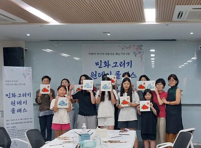 이 작가는 지난해 8월에도 재능기부를 통해 원데이클래스를 진행한 바 있으며, 민화에 대한 주민들의 관심과 인식을 높이고자 도곡1동 주민센터에 호작도(虎鵲圖)를 기탁했다. 해당 작품은 현재 주민센터 1층에서 볼 수 있다.