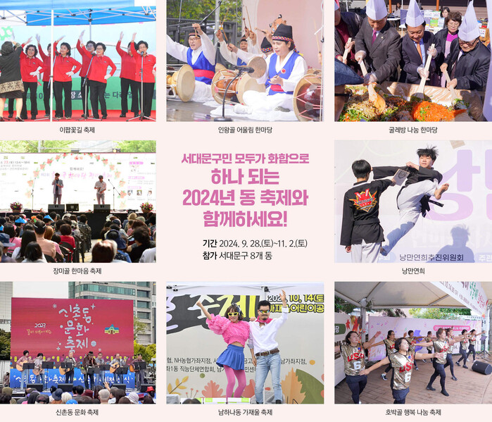 이성헌 서대문구청장은 “주민들이 기획하고 준비해 더욱 친근한 마을축제는 생활 터전 가까운 곳에서 즐길 수 있는 장점이 있다”며 “한동네 이웃분들이 함께 모여 행복한 추억을 만드는 시간이 되길 바란다”고 말했다.