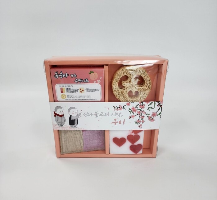 아도화상이 구미 해평면에 신라 최초의 사찰을 지으면서 겨울에도 복숭아꽃이 만발해 도리사(桃:복숭아도)라 이름지었다. 이를 소재로 한 복숭아향 주방비누와 수세미 비누받침대, 미세플라스틱 걱정없이 사용할 수 있는 천연수세미 세트다. 구미에서 직접 재배한 수세미로 제작돼 제로웨이스트 가치 소비를 실현할 수 있다.