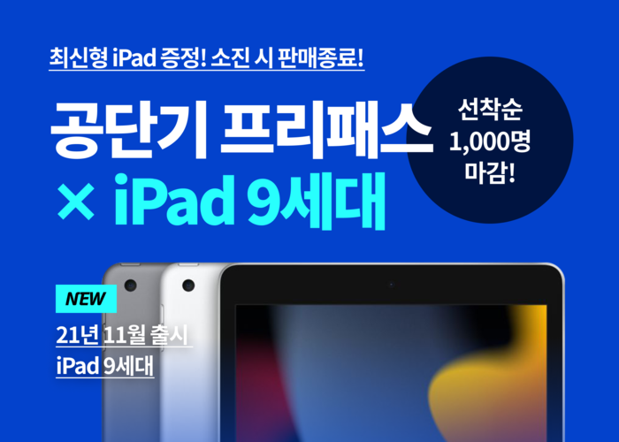 공단기 프리패스 x iPad 프로모션은 아이패드 9세대 1000대 소진 시 판매가 종료된다.
