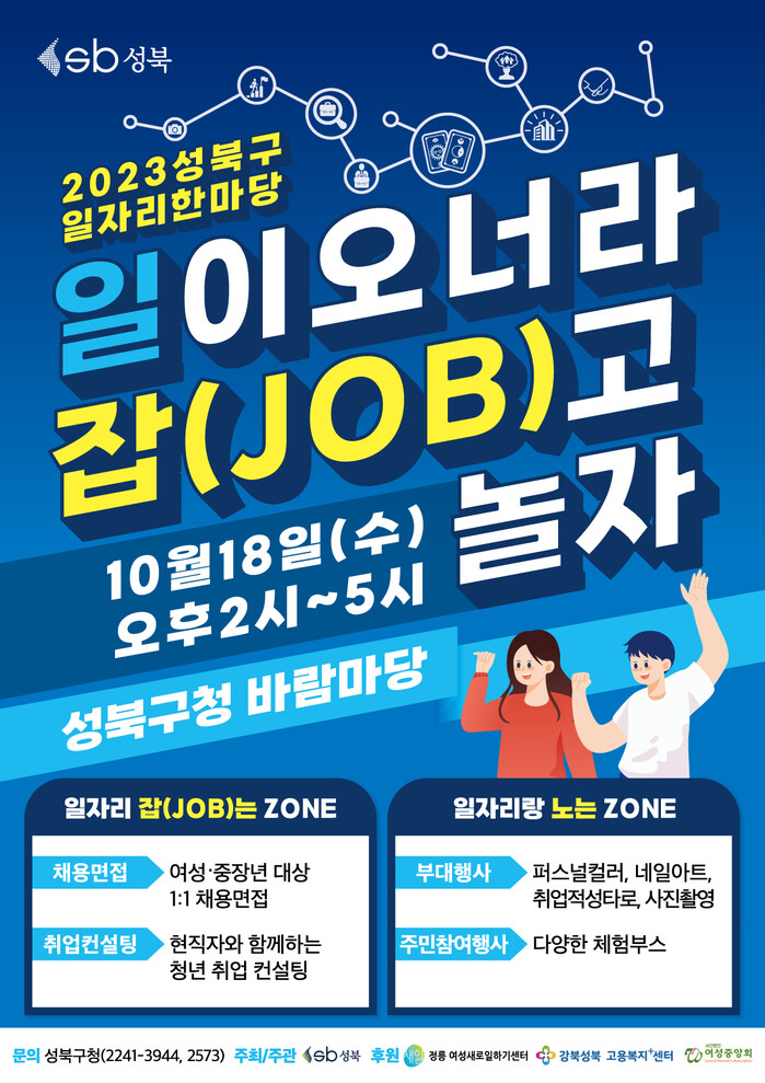 [시민일보 = 홍덕표 기자] 서울 성북구(구청장 이승로)가 18일 오후 2시 성북구청 바람마당에서 구민의 취업 갈증을 해소하고자 ‘2023년 성북구 일자리 한마당’을 개최한다고 밝혔다.