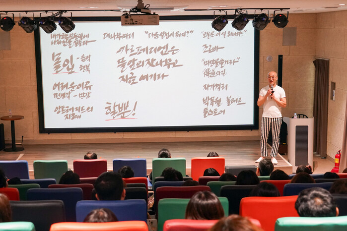 영화 '어바웃 타임' 상영과 광고계 거장이자 베스트셀러 작가인 박웅현 작가의 강연을 결합한 이번 교육은, 영화의 감동이 인문학적 성찰로 이어져 직원들이 더 넓은 시야와 깊이 있는 사고를 할 수 있도록 마련됐다.