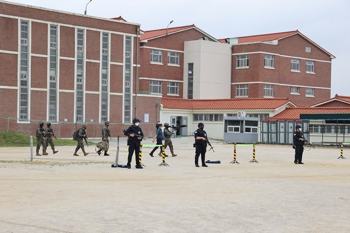 특히 폭발물을 장착한 적 드론이 해남교도소 벽을 넘어와 건물이 폭발하고 화재가 발생하는 상황은 실제상황과 같이 긴박하게 훈련이 이뤄졌다.