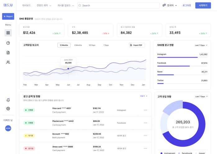 마케팅 올인원 솔루션 '마도사'는 주로 소상공인을 대상으로 사업화를 추진하고 있으며, 저렴한 비용으로 많은 소상공인들이 질 높은 마케팅 솔루션을 이용할 수 있도록 마케팅을 추진할 계획이라고 밝혔다.