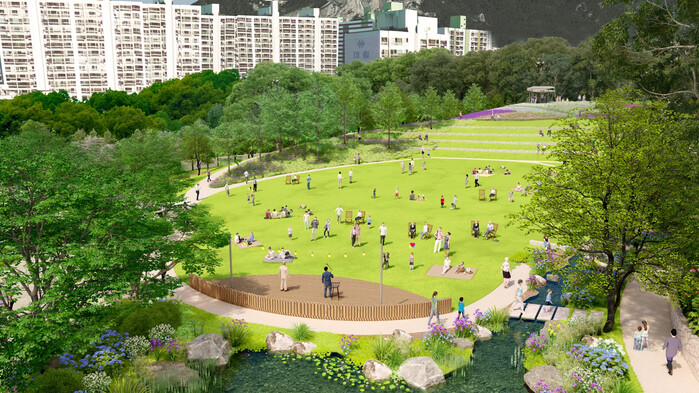공원은 ▲광장 ▲잔디마당 등 개방감을 주는 공간과 플랜터 테이블, 야외 운동기구 등을 갖춘 다목적 여가 공간으로 설계된다. 특히 경사 지형을 활용한 잔디 스탠드에서는 다양한 문화 행사도 열릴 계획이다. 또한 무장애 데크길을 설치해 보행 불편이 있는 주민들도 쉽게 이용할 수 있도록 한다.