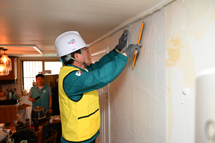 노후 집수리 서비스 대상은 남산 고도지구 내 1·2종 일반주거지역에서 살고 있는 저소득층 가구다. 양측은 오는 10월까지 네 집을 추가로 선정해 수리한다는 계획이다. 가구당 500만원 총 3000만원에 달하는 예산은 KT 에스테이트가 전액 지원한다.