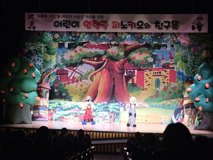 | ▲ 지난해 구로구청 강당에서 인형극 ‘피노키오와 친구들’ 공연이 펼쳐지고 있다. (사진=구로구청 제공) |