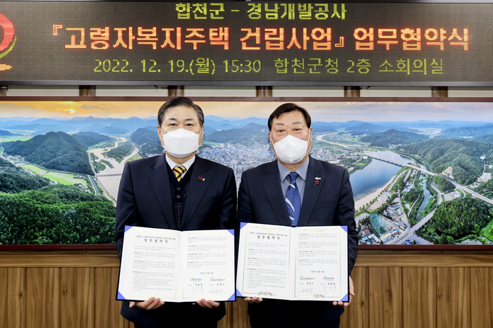 업무 협약식에는 합천군과 경남개발공사 등 관계자 10여 명이 참석한 가운데, 향후 합천읍 지역 일원에 추진 중인 고령자복지주택 건립을 위해 상호협력을 약속했다.고령자복지주택은 총사업비 322억원(국고 출자126억원, 융자132억원, 군비64억원)이 투입되며, 10층 이상 116호(호당 전용면적 38㎡)규모로 저층부에는 고령자 친화형 사회복지시설, 상층부에는 거주용 공간을 배치하는 주상복합형 통합공공임대주택으로 2026년 하반기 준공 및 입주를 목표로 하고 있으며, 입주대상은 합천군민으로 65세 이상 무주택 고령자이다.