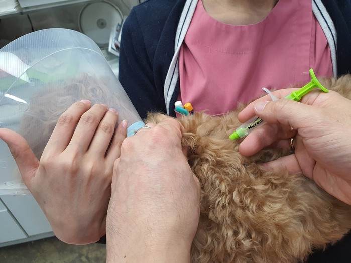 | ▲ 동물 등록을 위해 반려견 체내에 내장형 칩을 삽입하고 있는 모습 (사진제공=도봉구청) |