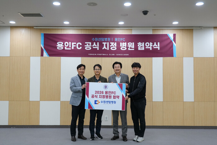 [용인=오왕석 기자] (재)용인시 시민프로축구단(이하 용인FC)은 지난 10월 21일(화) 수원센텀병원(병원장 여석곤)과 공식 지정병원 협약을 체결했다. 이번 협약은 선수단의 체계적인 건강 관리와 의료 지원을 강화하고, 지역 사회와의 상생 협력 기반을 넓히기 위한 취지로 진행됐다.