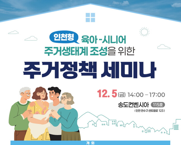 발표는 채은경 인천연구원 선임연구원과 박광재 한국주거학회 회장이 인구 생활 활력 도시 인천-저출생/고령화 사회 대응 중심, iH 육아 친화 및 시니어 특화 주거단지 모델 구상을 주제로 진행된다.