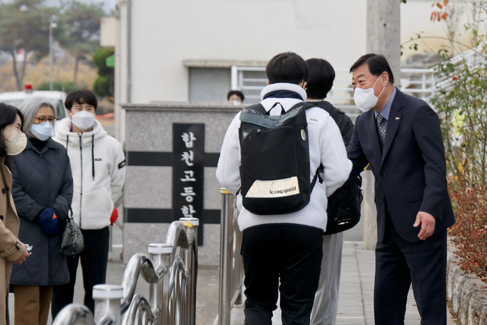 김윤철 합천군수는 “코로나19 등으로 매우 어려운 여건 속에서도 최선을 다한 수험생들에게 응원의 박수를 보낸다”며 “긴장하지 말고 평소처럼 갈고닦은 실력을 유감없이 발휘해 좋은 결과가 있길 바란다”고 말했다.