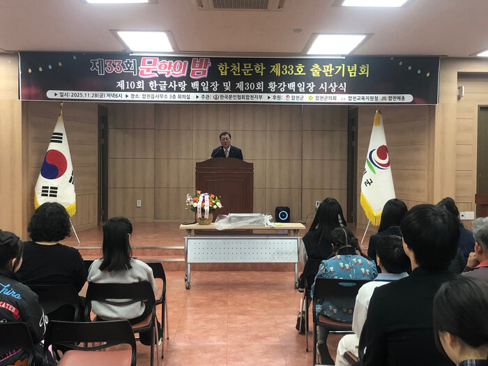 이번 행사는 (사)한국문인협회 합천지부(지부장 최병태) 주관으로 개최되었으며, 「합천문학」 제33호 발간을 기념하고 ‘제10회 한글사랑백일장’ 및 ‘제30회 황강백일장’의 시상식이 함께 진행됐다.
