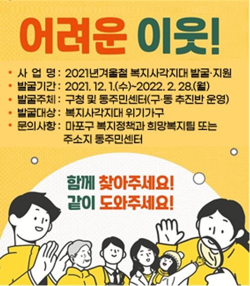 | ▲ 겨울철 복지사각지대 집중 발굴·지원 안내문. (사진제공=마포구청) |