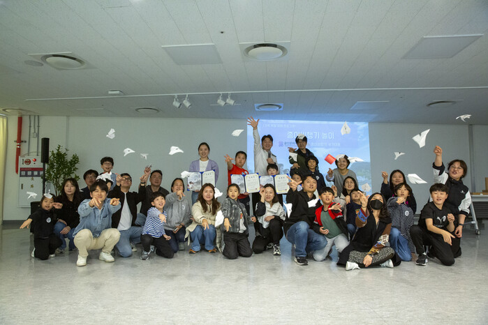 [용인=오왕석 기자] 용인문화재단(이사장 이상일)은 지난 3월 22일 용인문화도시플랫폼 공생광장(이하 ‘공생광장’) 전시 ‘종이비행기에 소원을 담아’와 연계한 가족 체험 특별 프로그램 ‘종이비행기 놀이’를 성황리에 마쳤다.