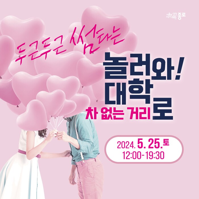 [시민일보 = 이대우 기자] 종로구(구청장 정문헌)가 오는 25일 낮 12시~오후 7시30분 대학로 중심 대로변에서 ‘놀러와, 대학로! 차 없는 거리로’를 개최한다.