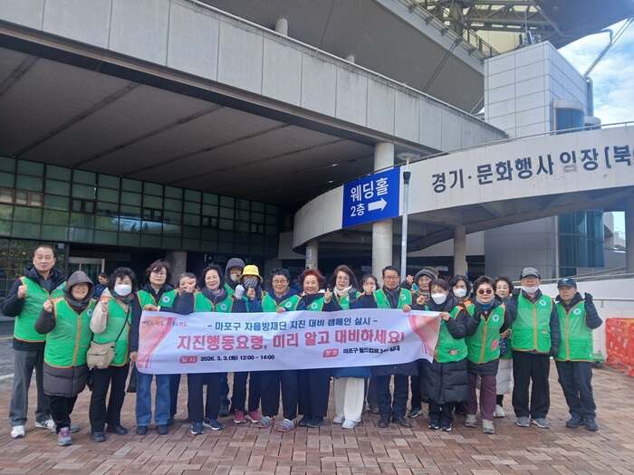 [시민일보 = 문민호 기자] 마포구(구청장 박강수)는 최근 서울월드컵경기장 북측광장 일대에서 지진 재난 상황을 가정한 ‘통합지원본부 운영 훈련’을 실시했다고 12일 밝혔다.