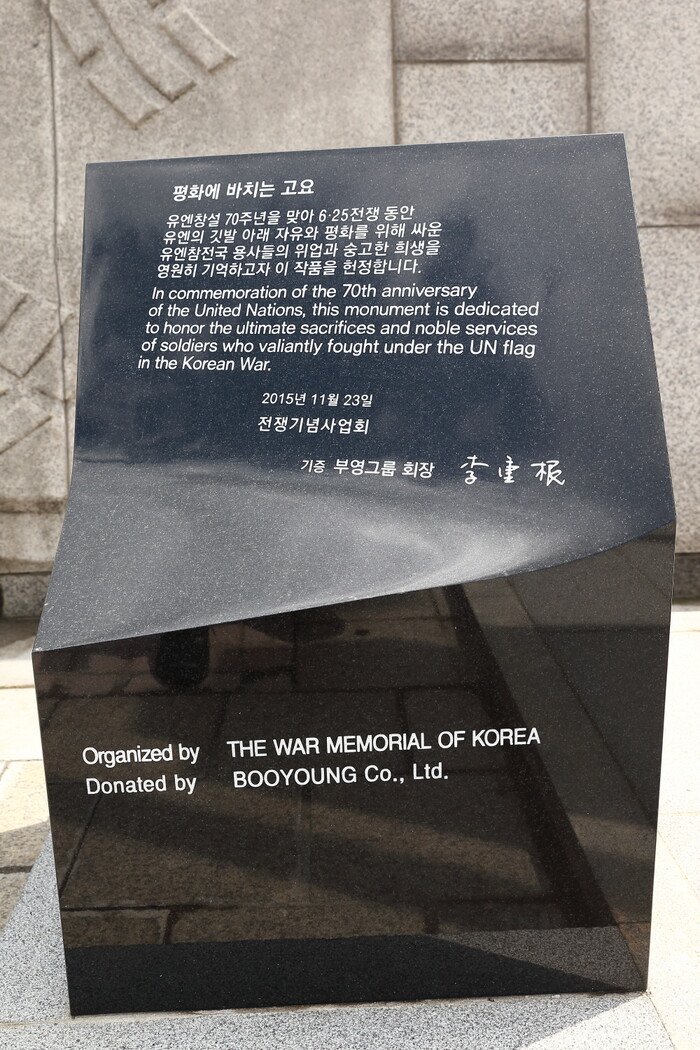 | ▲ 전쟁기념관 유엔참전비기증자 표지석.(사진=부영그룹 제공) |