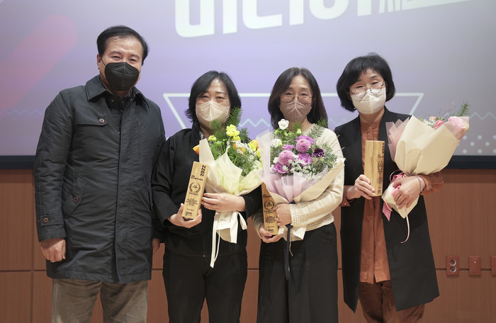 | ▲ 박지훈 성남문화재단 성남미디어센터장(사진좌측)과 수상한 시민제작단. |
