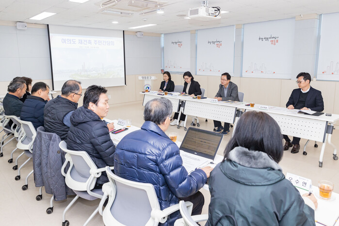 이에 구는 11월30일, ‘여의도 재건축 주민간담회’를 열어 여의도 재건축사업의 현황을 공유하고 주민들의 의견을 직접 듣는 시간을 가졌다.