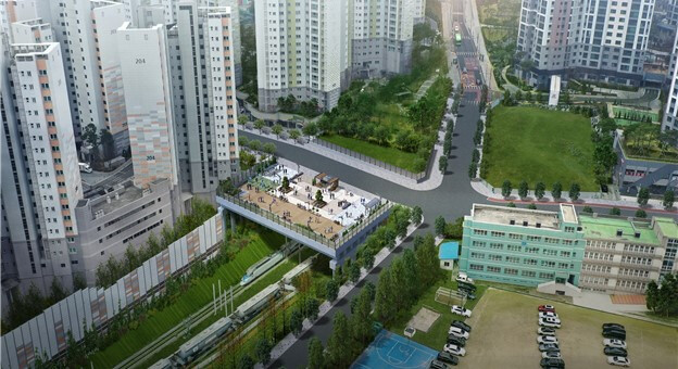| ▲ 도로교와 녹지교로 이루어져 있는 가칭 북아현 과선교 조감도. (사진=서대문구청 제공) |
