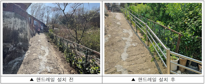 | ▲ 안전 손잡이(핸드레일) 설치 전후 모습. (사진=구로구청 제공) |