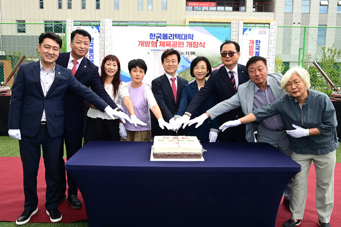진주시는 28일 한국폴리텍대학 진주캠퍼스 운동장에 조성된 ‘한국폴리텍대학 개방형 체육공원’개장식을 가졌다.