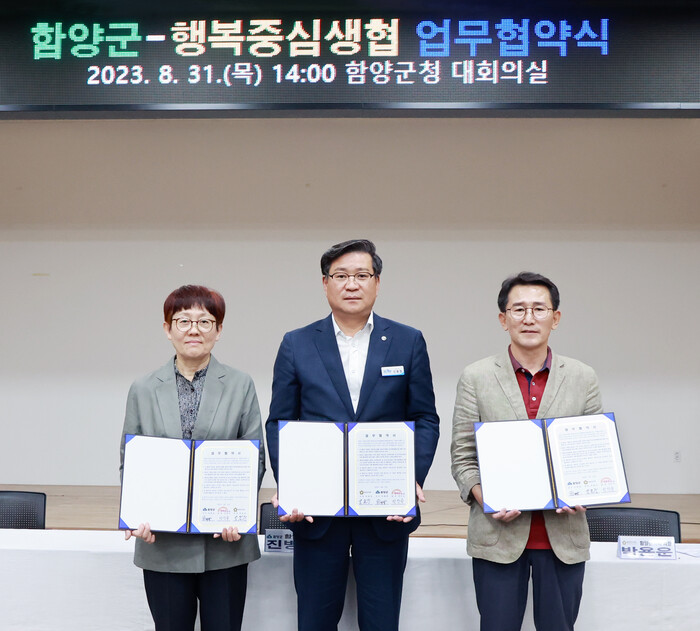 안인숙 행복중심생협 연합회장은 “이번 업무협약을 통해 함양군 농특산물의 안정적인 공급과 판로를 확대하고, 우리 행복중심생협 조합원들과 함께 성장해 나가는데 최선의 노력을 기울이겠다.”이라고 말했다.