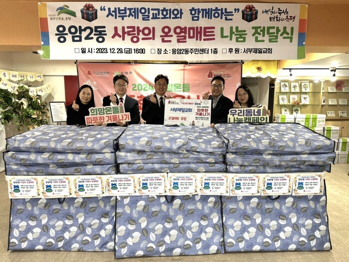 [시민일보 = 이대우 기자] 서울 은평구(구청장 김미경) 응암2동은 최근 연말을 맞아 서부제일교회로부터 한파에 취약한 이웃이 따뜻한 겨울을 보낼 수 있도록 하는 온열매트를 기탁받았다고 밝혔다.