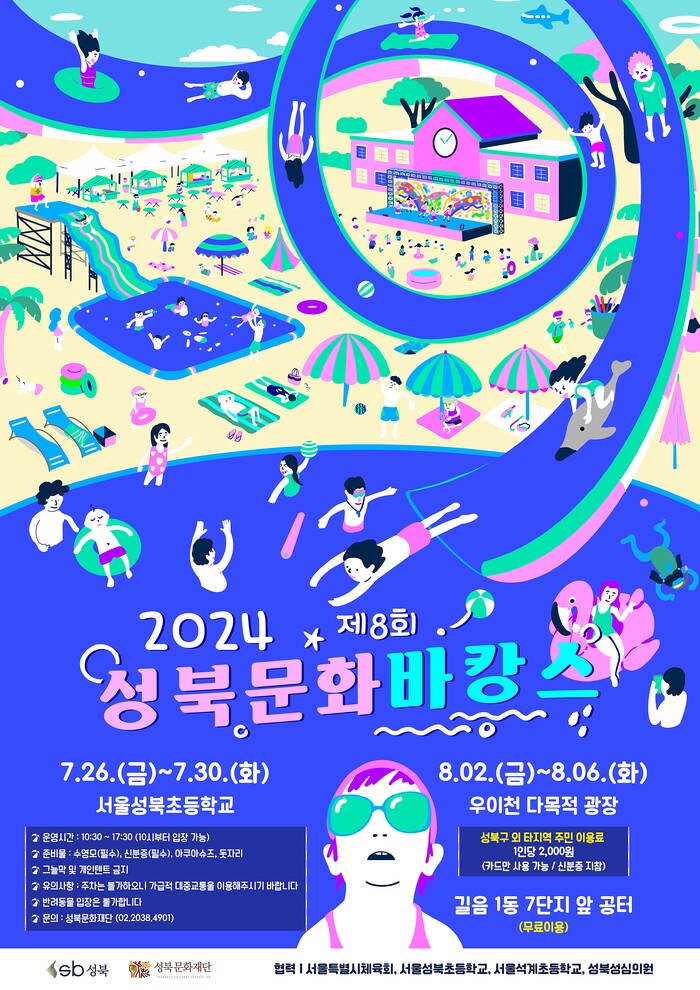 성북문화바캉스는 야외에서 진행하는 물놀이 축제이기에 기상 상황에 따라 개장 상황 및 운영시간이 바뀔 수 있다. 운영시간 등은 성북문화재단 카카오톡 채널을 통해 실시간으로 확인할 수 있다.