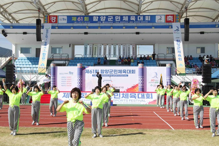 올해로 61회를 맞은 함양군민체육대회는 11개 읍·면별 특색있는 소개와 입장으로 눈길을 끌었으며, 2022년 전국생활체육대축전 체조대회에서 우승한 안의면 실버체조팀의 축하공연으로 분위기는 한층 고조되었다.