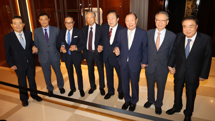 앞서 지난달 30일 서울 여의도 정대철 헌정회장 사무실에서 정 회장을 비롯해 여야의 최고령 상임고문인 신영균 국민의힘 상임고문과 권노갑 민주당 상임고문, 그리고 전직 국회의장 5명(김원기·김형오·문희상·정세균·정의화) 등 8명이 모였다.