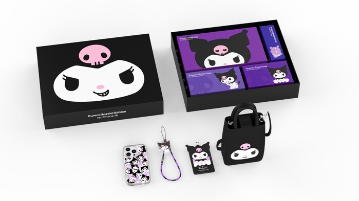 ‘아이폰15 쿠로미 패키지’는 아이폰15와 아이폰15 프로를 쿠로미 캐릭터로 꾸밀 수 있는 폰케이스, 스트랩, 카드지갑, 미니백 4종으로 구성했다.