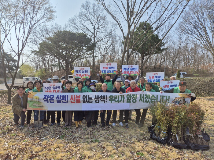 이날 행사는 배티재 공원 화단에 남천나무와 치자나무를 식재하여 주민들에게 봄의 생기를 불어넣고 방문객들의 눈길을 사로잡을 예정이며, 정봉훈 의장, 이종철 산업건설위원장, 이태련의원, 박수현 면장 외 직원들이 함께 산불 예방 홍보 캠페인을 실시하여 산불예방에 대한 중요성을 다시 한번 더 강조하는 시간도 가졌다.