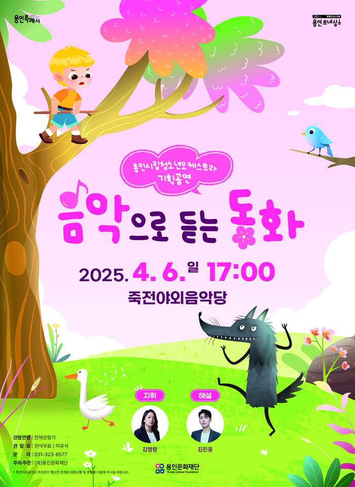 [용인=오왕석 기자] 용인문화재단(이사장 이상일)은 오는 4월 6일, 봄이 열리는 길목에 용인 대표 야외 공연장인 죽전야외음악당에서 용인시립청소년오케스트라 기획공연 ‘음악으로 듣는 동화’를 개최한다고 밝혔다.