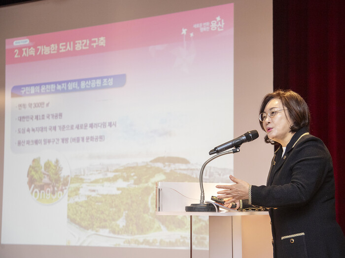 구정 주요 현안으로는 ▲국제업무지구 조성 ▲용산전자상가 개발 ▲로컬브랜드 상권 활성화 사업 ▲한남 재정비 사업 ▲교육도시 1번지 기반 마련 사업 등이 있으며, 구민들을 위한 다양한 생활 밀착형 사업들을 보고할 예정이다.