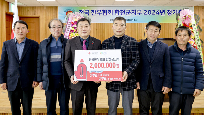 또한 이날 행사에 전국한우협회 합천군지부에서는 어려운 이웃과 함께 나누고자 성금 2백만원을 기탁했으며, 기탁금은 관내 어려운 가정에 사용될 예정이다.