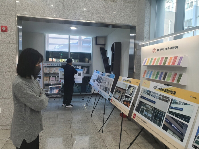 | ▲ 2022년 서울시 좋은간판 공모전 수상작을 구경하는 모습. (사진=구로구청 제공) |