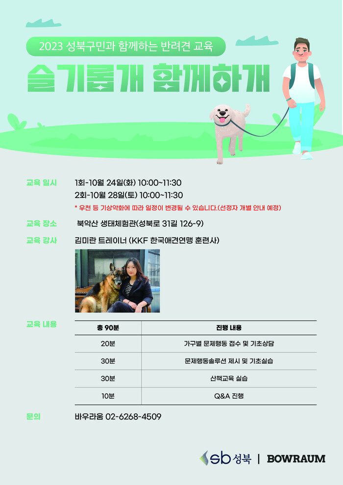 산책 교육과 관련한 기타 문의사항은 성북구 지역경제과 동물보호팀 또는 바우라움으로 연락하면 된다.