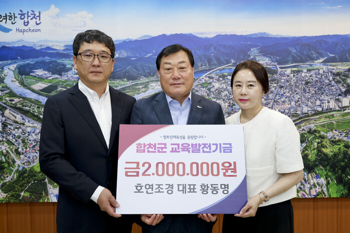 기탁식에서 황동명 대표는 “합천군의 교육발전과 우수한 향토인재육성을 위해 교육발전기금을 기탁하고자 한다”며 “합천군의 밝은 미래를 위해 조금이나마 도움이 되길 바란다”고 소감을 전했다.