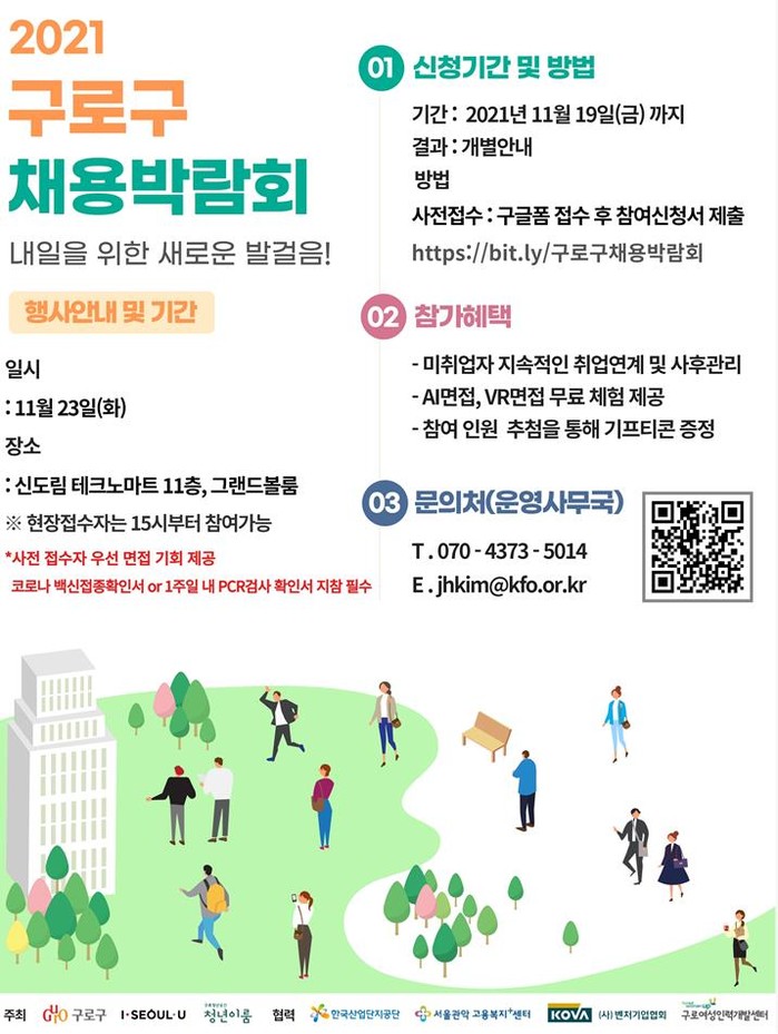 [시민일보 = 이대우 기자] 구로구(구청장 이성)가 오는 23일 신도림 테크노마트 그랜드볼룸에서 ‘2021 구로구 채용박람회’를 개최한다.
