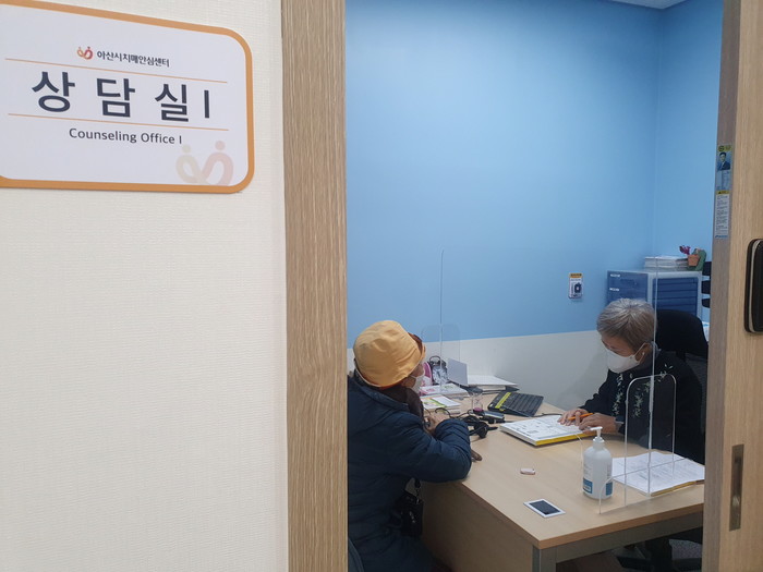 충남 아산시 치매안심센터가 지역내 만 75세 이상 노인과 고령 운전자의 운전면허 정기 적성검사(갱신)에 필요한 인지선별검사(CIST)를 연중 무료로 실시한다. 사진은 최근 대상자가 인지선별검사를 받고 있는 모습. (사진제공=아산시청)